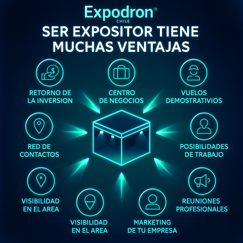 Exponer en EXPODRON® CHILE es instalar tu empresa en el punto exacto donde la demanda real se encuentra con la innovación: un entorno que acelera relaciones, valida tecnología en terreno y abre puertas comerciales de alto valor.